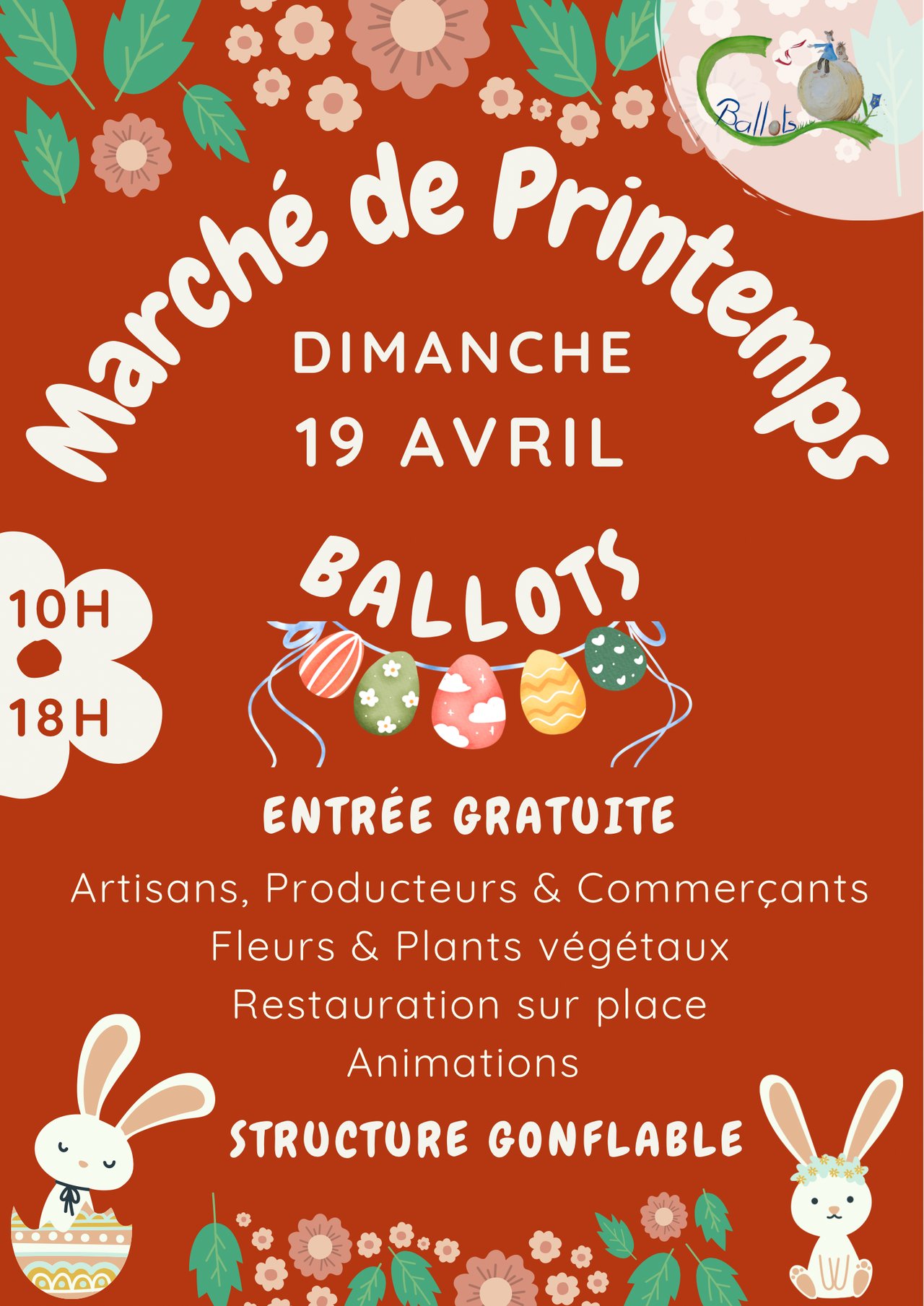 Rendez-vous le 19 avril de 10h à 18h pour partager un moment convivial avec nous à la salle des sports de Ballots.