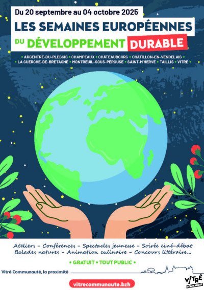 À l’occasion des Semaines Européennes du Développement Durable, Vitré Communauté propose, du 20 septembre au 4 octobre 2025, une série d’événements conviviaux et accessibles à tous. Conférences, balades nature, ciné-débat, ateliers pratiques ou encore spectacle… autant de rendez-vous pour découvrir, agir et partager autour de la transition écologique.